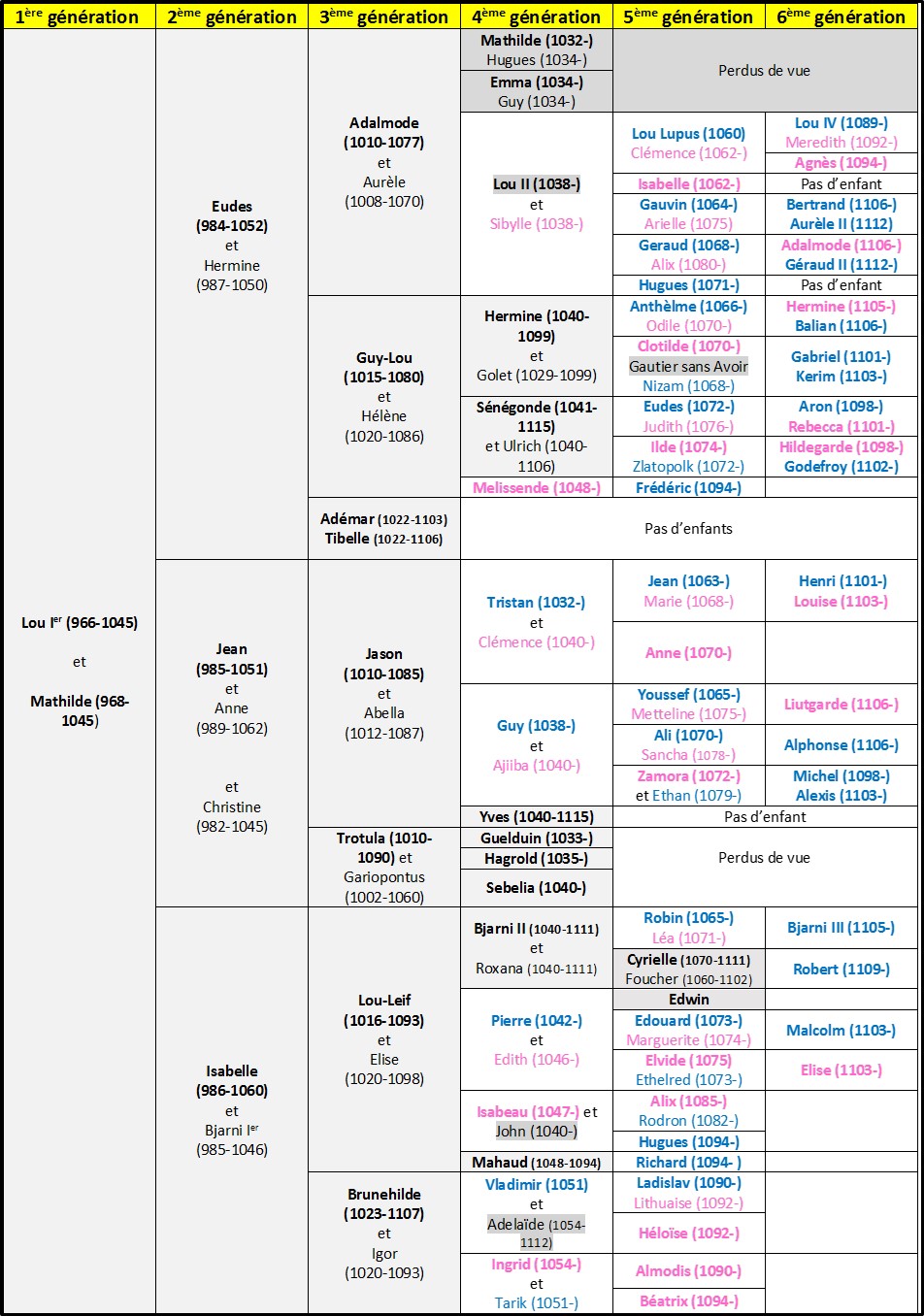 Les personnages grisés sont décédés