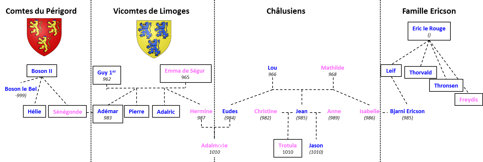 Les personnages encadrés ont réellement existé, les non-encadrés sont fictifs